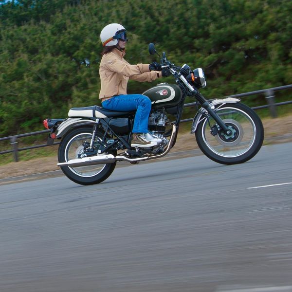 L'ultima nata della famiglia W strizza l'occhio al passato ma si proietta a tutto gas nel futuro. Con un design ispirato al modello 650-W1 del 1965, la nuovissima W230 ha un'impronta moderna grazie al collaudato motore a 4 tempi Kawasaki da 233 cc. Il telaio dalle proporzioni compatte, un'altezza della sella ridotta e un'erogazione lineare offrono l'emozione di affascinare una nuova generazione di motociclisti