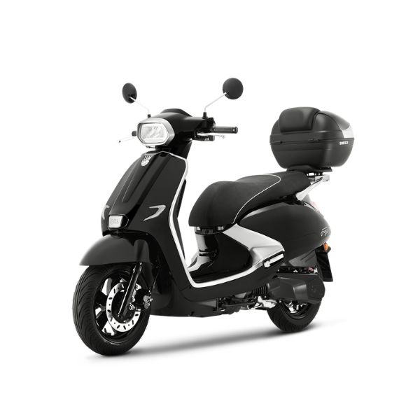 Sym Fugue 125 è uno scooter che combina armoniosamente stile retrò-moderno e funzionalità contemporanea, ideale per i cittadini esigenti. E’ uno scooter completo, adatto a chi cerca stile, praticità e sicurezza in un unico mezzo. Perfetto per la vita di tutti i giorni in città, si distingue per il suo design elegante e le sue dotazioni moderne. Ispirato alla forma di musica classica “Fuga”, offre un’autonomia straordinaria grazie a un consumo ottimizzato.