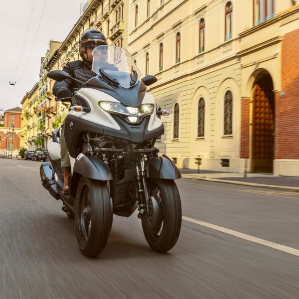 Tricity 300 è pronto a cambiarti la vita. Perché questo scooter a 3 ruote offre una sensazione di stabilità e confidenza e, essendo il modello più leggero ed elegante della categoria, è il modo più intelligente di muoversi in città. E la buona notizia è che puoi guidarlo anche con la tua patente B*! (*Potrebbero sussistere limiti e restrizioni a seconda delle leggi dei diversi Paesi. Inoltre, Yamaha consiglia a tutti i motociclisti di frequentare un corso di formazione motociclistica prima di guidare un qualsiasi veicolo a due o tre ruote).